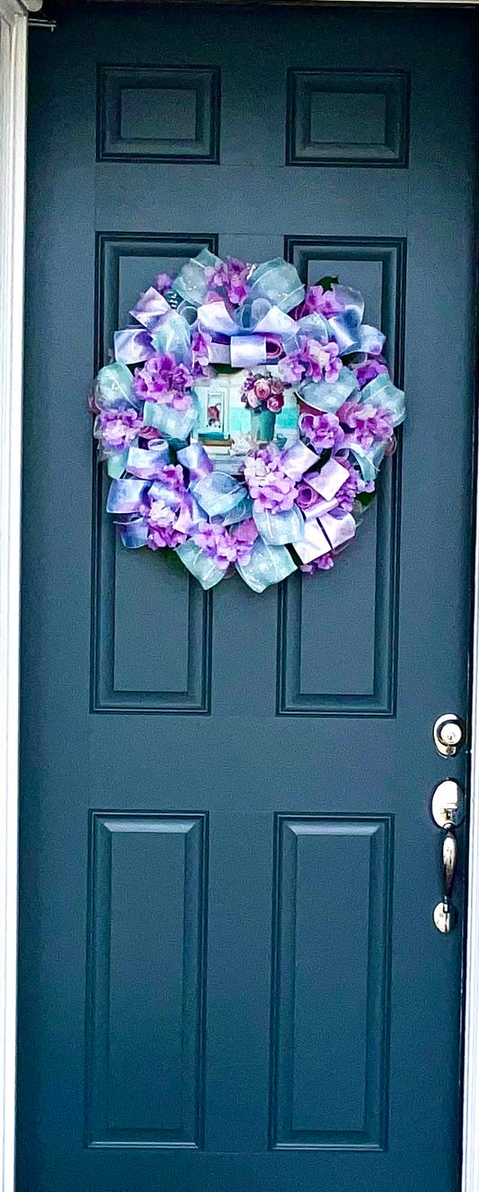 Hydrangea Beach Coastal Tropical Floral Wreath for Front Door Mothers Day Gift Spring Summer Everyday Wreath Coastal Waves Seashells Flowers