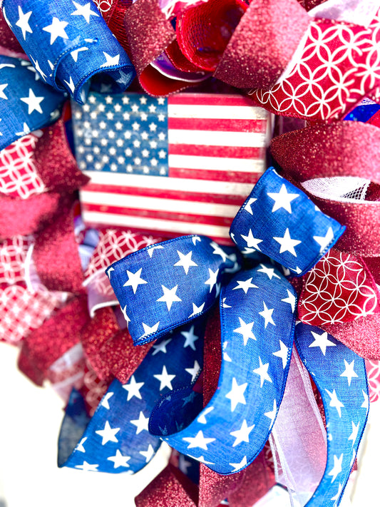 Patriotic Decor, Patriotic Wreath for Front Door, Memorial Day Americana Wreath, Red White Blue Fourth of July USA Welcome Home Veterans Day