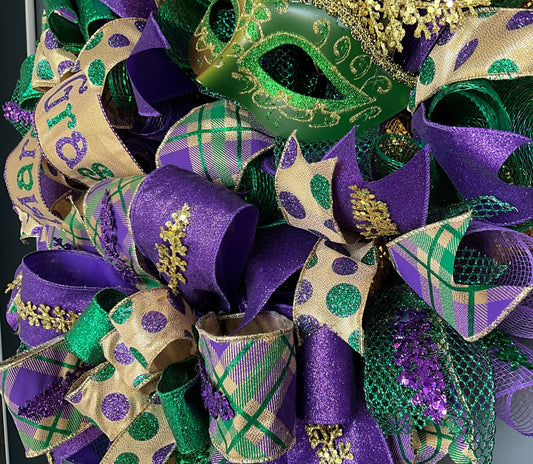 Mardi Gras Wreath with Mask for Front Door Mardi Gras Mask Wreath Decoration Mardi Gras Carnival Wreath Fat Tuesday Wreath Mardi Gras Decor