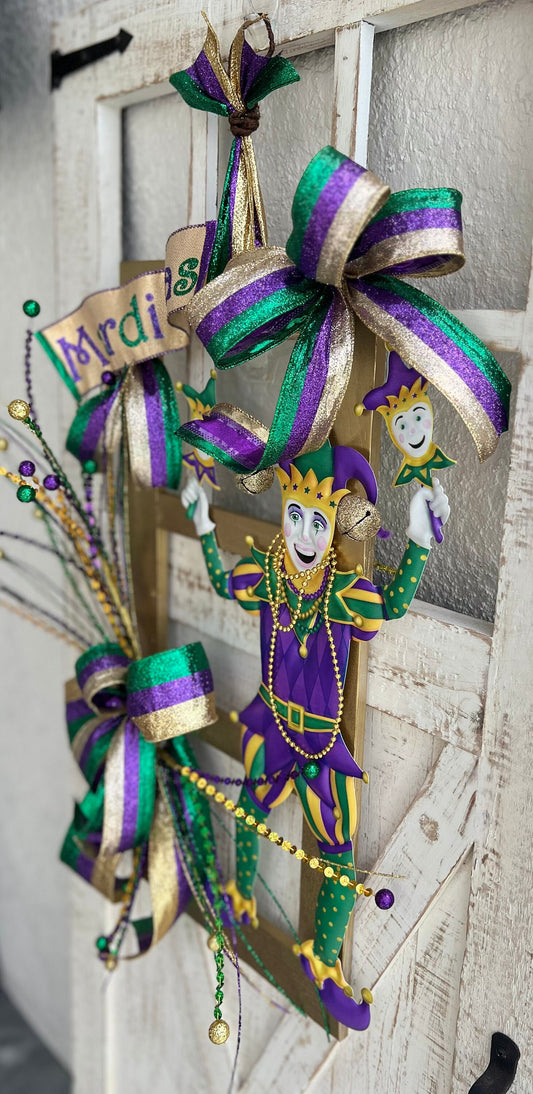 Mardi Gras Bead Jester Wreath Decoration for Front Door Mardi Gras Frame Wreath with Beads for Front Door
