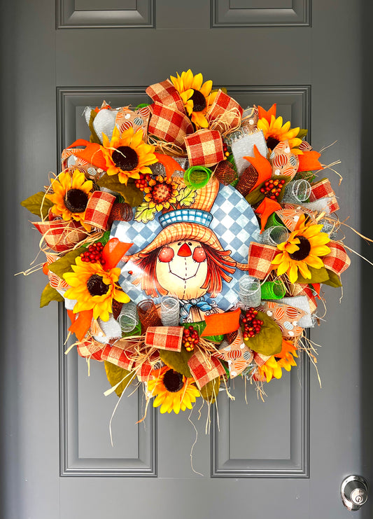 Autumn Harvest Thanksgiving Scarecrow Wreath, Fall Rustic Door, Fall Door Decor Pouf Designs by Valerie Fall Front Door Decor (Copy)