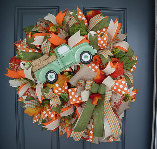 Sold outFall Autumn Green Truck Wreath