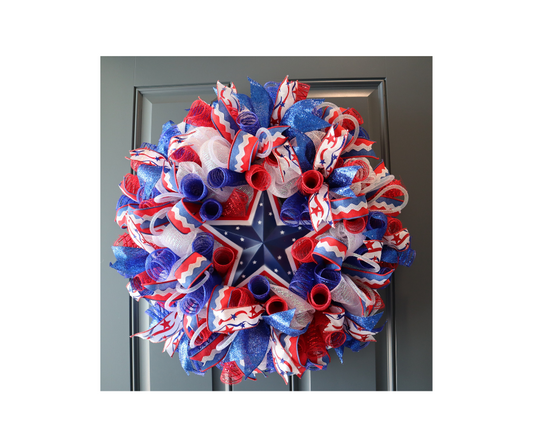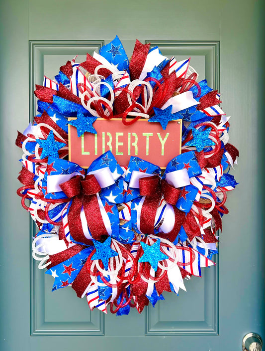 Patriotic Wreath for Front Door, Memorial Day Wreath, Red White Blue 4th of July USA Wreath, Welcome Home Military Liberty Wreath, July 4th