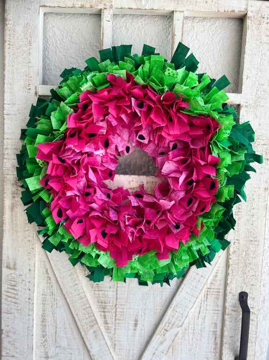 Summer Watermelon Wreath for Front Door, Summer Rag Wreath for Front Door, Rag Wreath, Fruit Wreath for Door, Fabric Wreath for Door