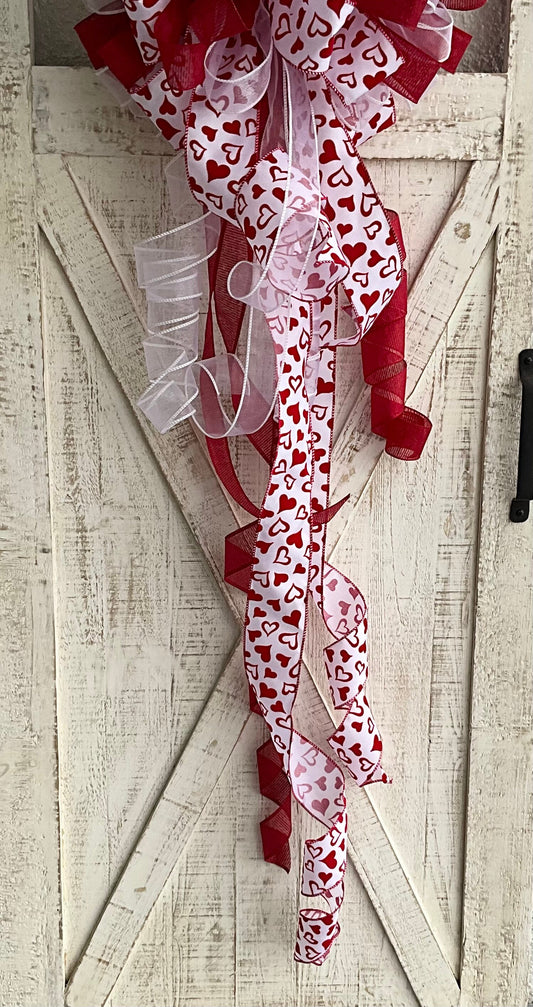 Valentines Day Bow Valentines Day Gift Gift for Her Gift for Me Tree Topper Bow Large Bow for Car Red and White Bow Valentines Wreath