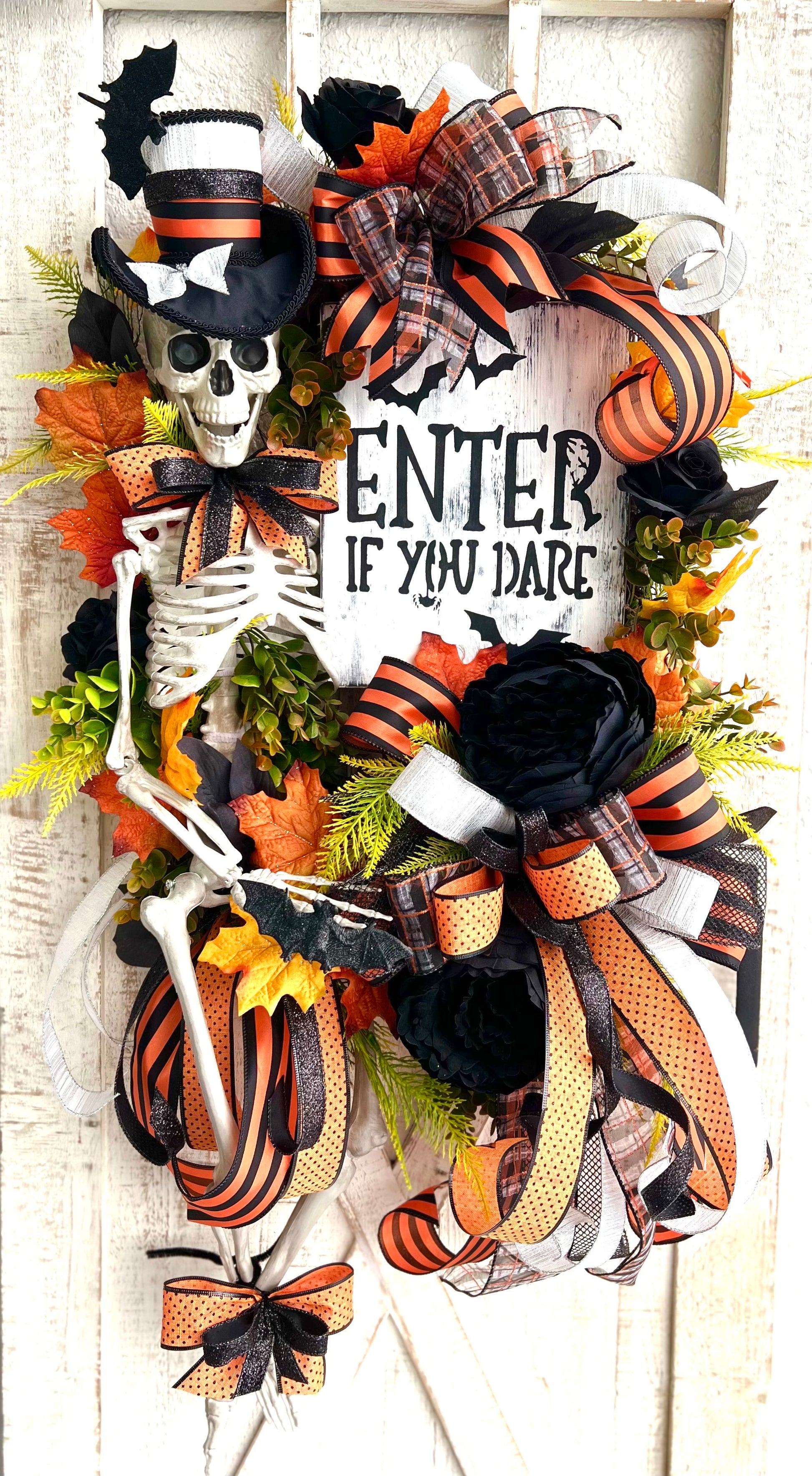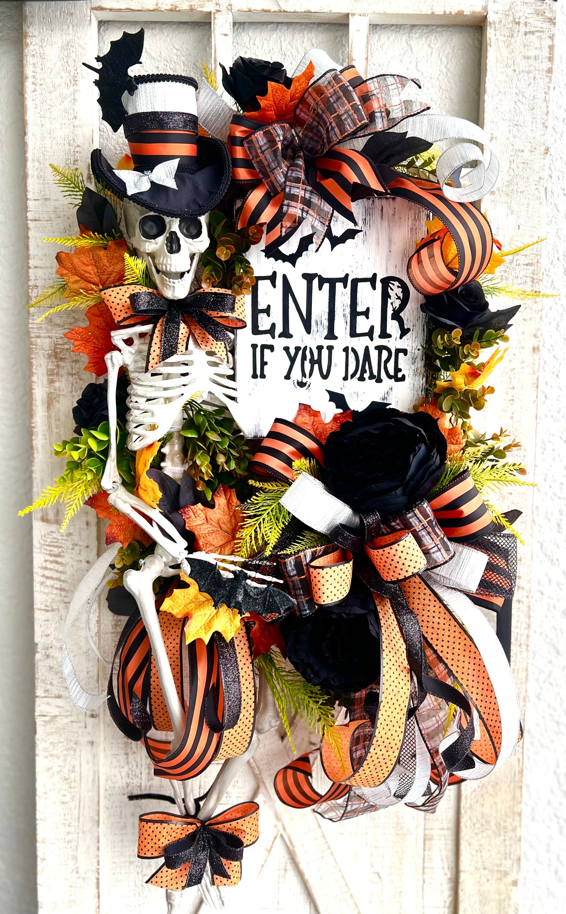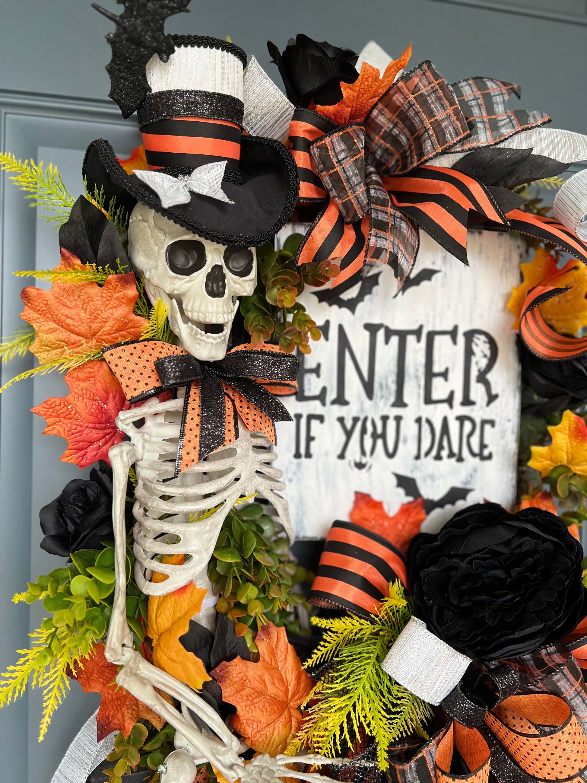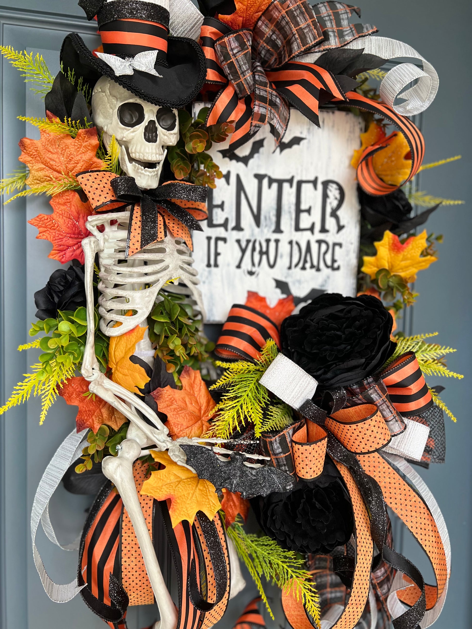 Halloween Wreath for Front Door, Skeleton Wreath for Front Door, Halloween Wreath, Haunted House Decor Enter if You Dare, Gothic Wreath