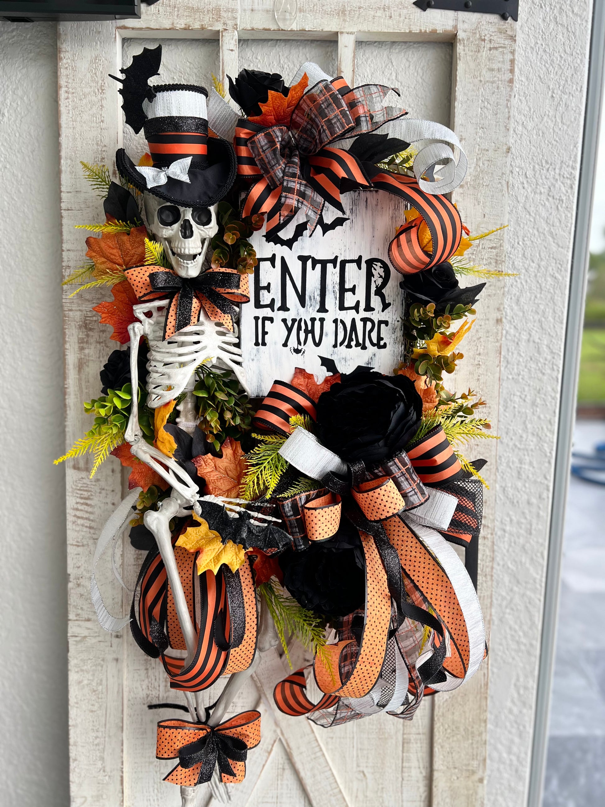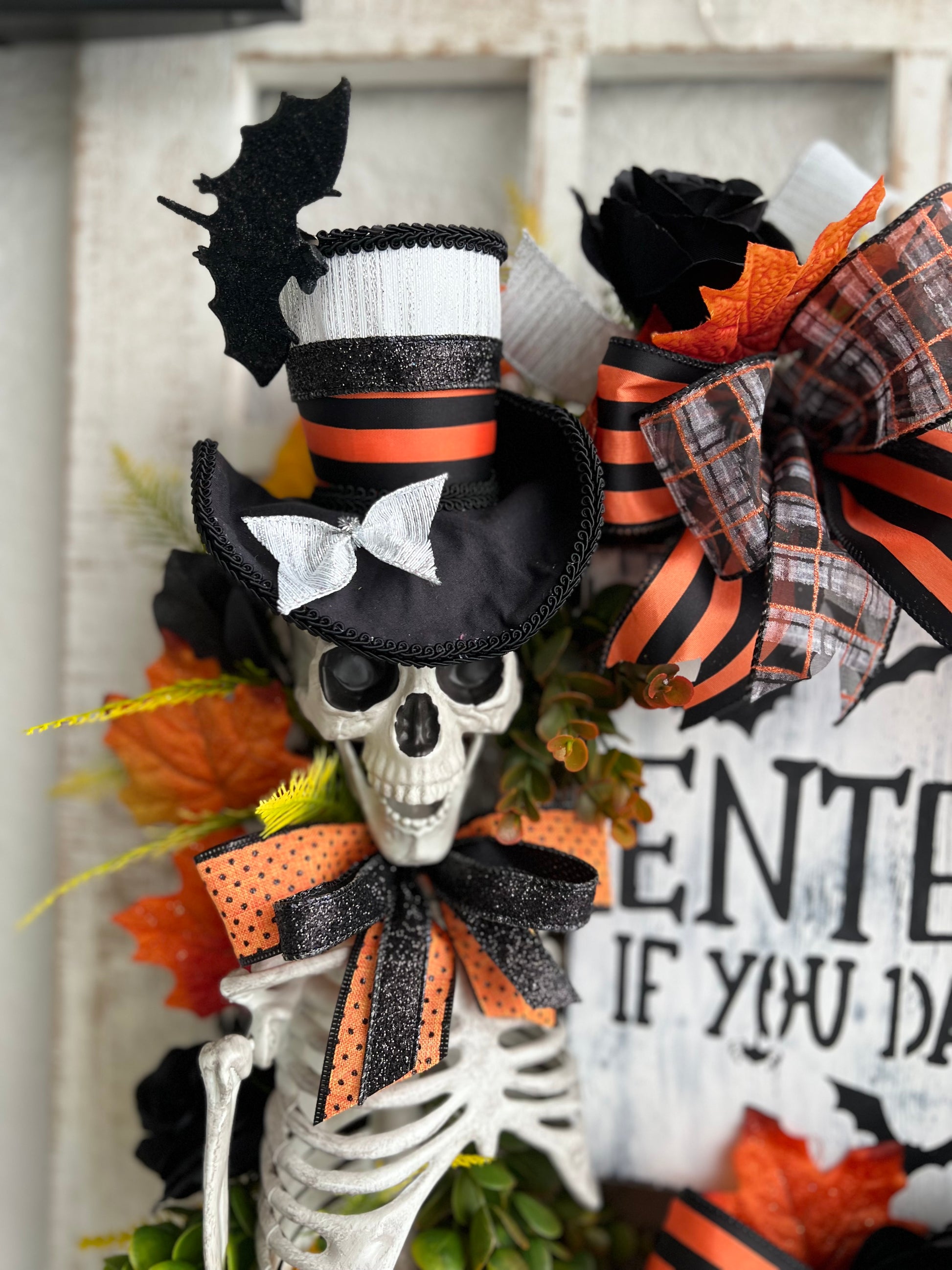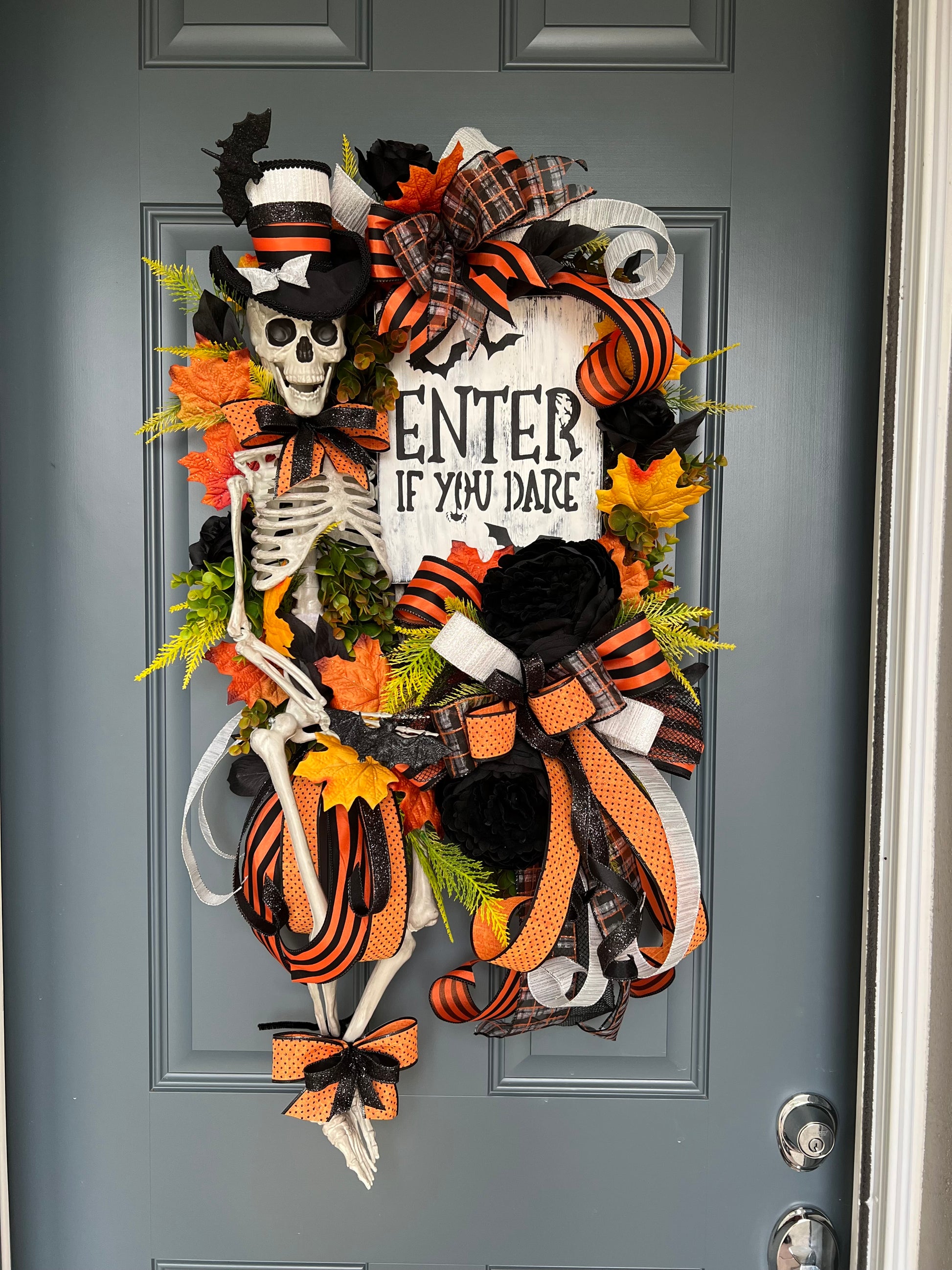 Halloween Wreath for Front Door, Skeleton Wreath for Front Door, Halloween Wreath, Haunted House Decor Enter if You Dare, Gothic Wreath