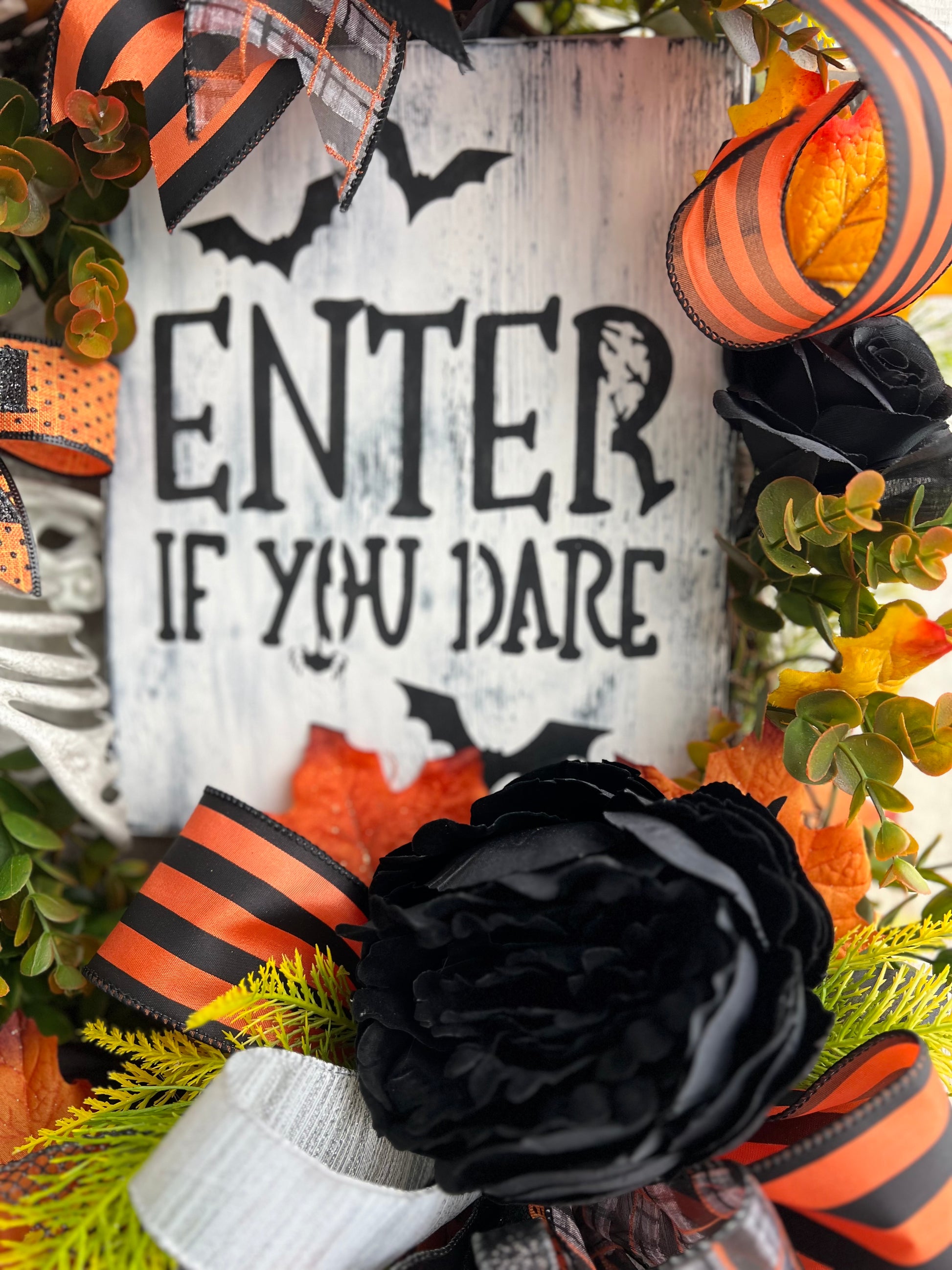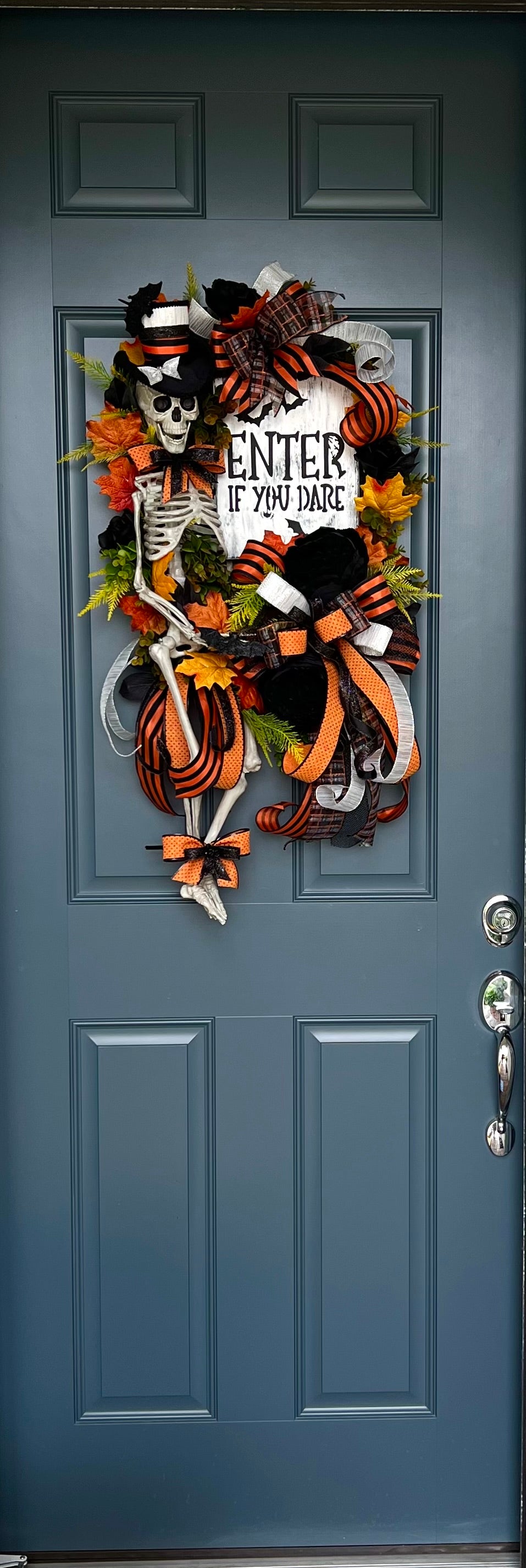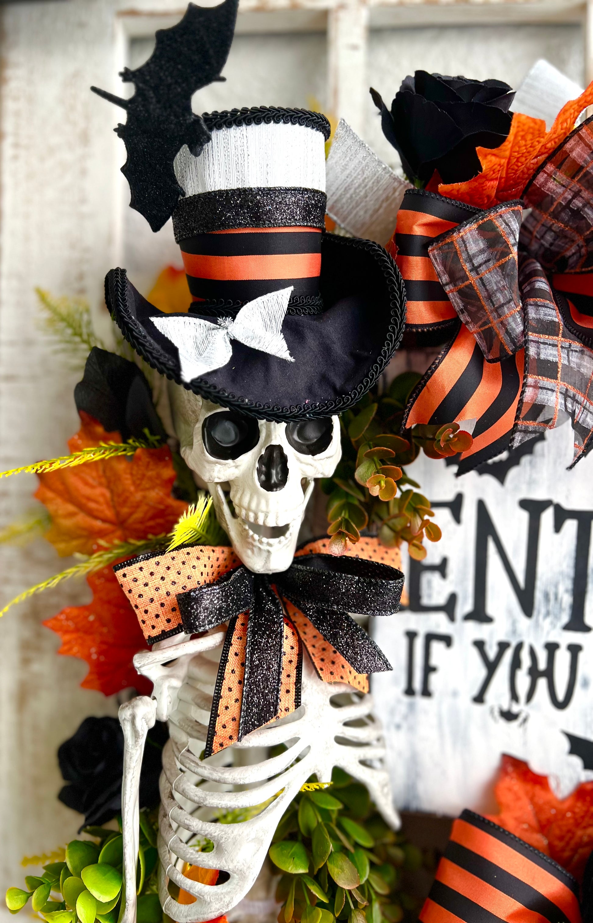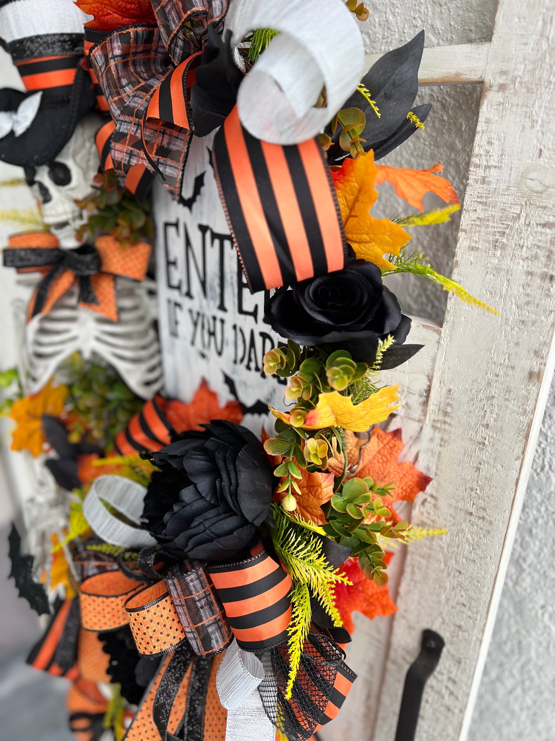 Halloween Wreath for Front Door, Skeleton Wreath for Front Door, Halloween Wreath, Haunted House Decor Enter if You Dare, Gothic Wreath