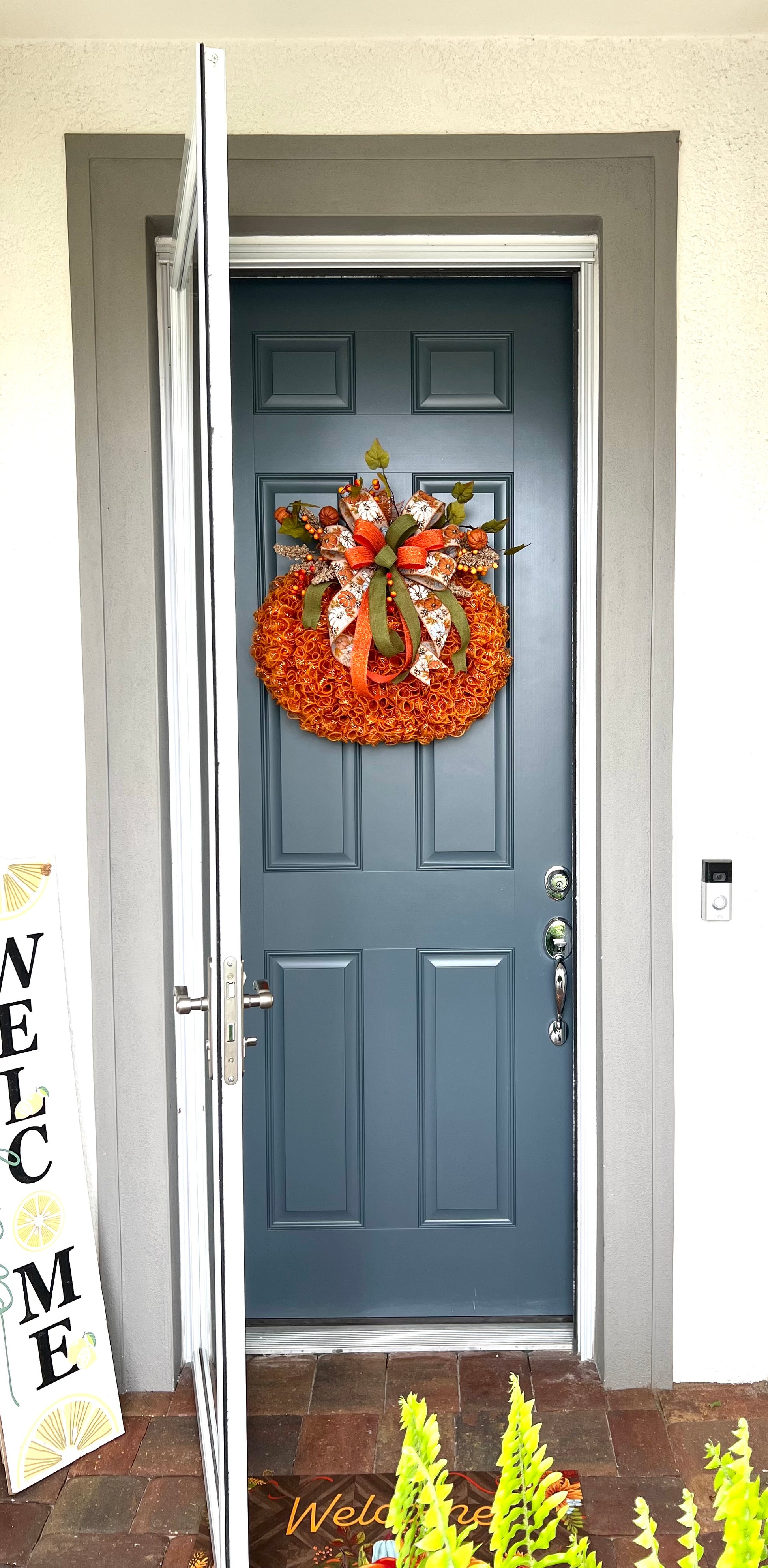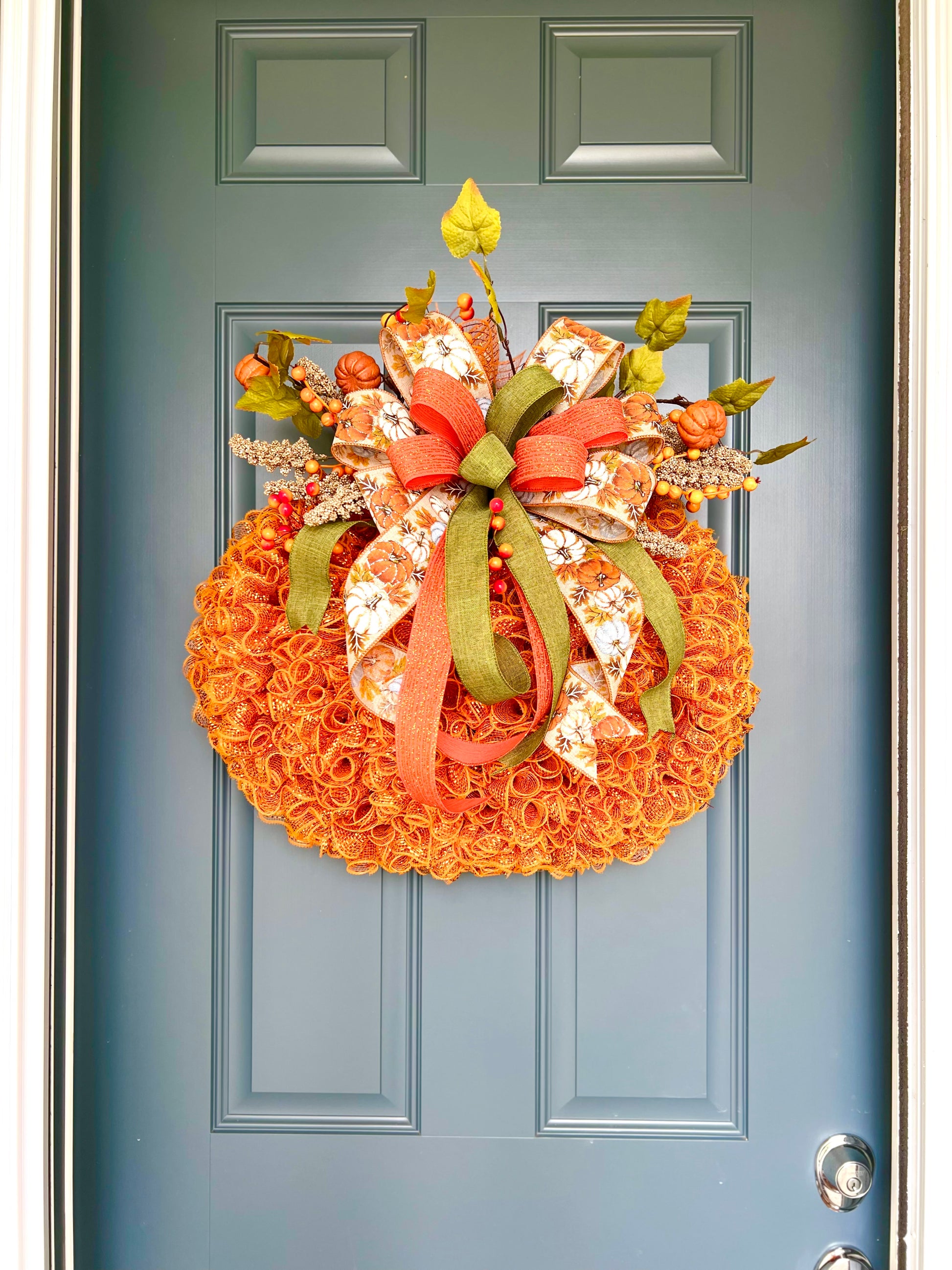 This fall or autumn wreath pumpkin wreath or door hanger would look amazing on any front door, porch, or wall.